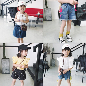 Cô gái quần short denim 2018 mới thời trang Hàn Quốc quần áo trẻ em Hàn Quốc phiên bản của mùa hè mặc bên ngoài cô gái phần mỏng