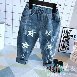 Quần áo trẻ em 2018 mùa hè mới chàng trai và cô gái Hàn Quốc phiên bản của hoang dã thường năm cánh sao mèo cần phải lỗ quần jean