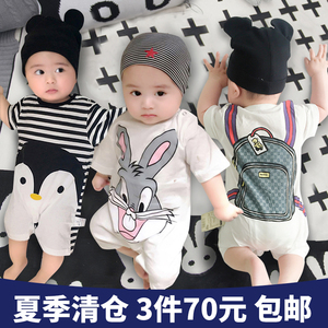 Bé ngắn tay jumpsuit mùa hè phần mỏng cotton trẻ sơ sinh quần áo nữ leo núi quần áo mùa hè nam quần áo trẻ em quần áo mùa hè
