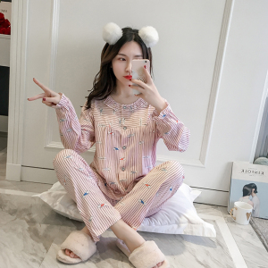 Đồ ngủ phụ nữ mùa xuân và mùa thu mùa hè cotton dài tay cardigan mỏng Hàn Quốc phiên bản của XL ladies tháng dịch vụ nhà phù hợp với