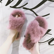2018 phiên bản mới của Hàn Quốc của dép len đặt ngón chân đeo một từ với hở ngón dày nửa dưới dép lê thời trang lông thỏ