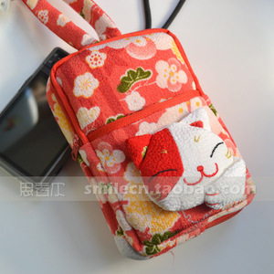 Nhật Bản và Hàn Quốc gió の 喜 喜 屋 Mèo may mắn ba dây kéo đa chức năng máy ảnh kỹ thuật số thẻ máy túi máy ảnh phụ kiện máy ảnh