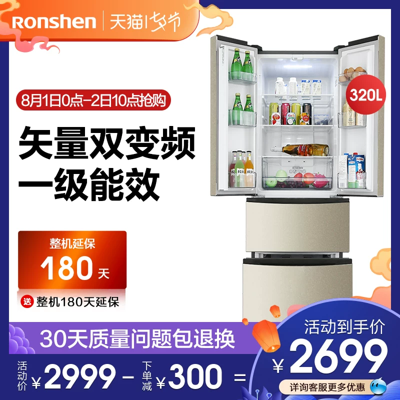 Ronshen / Rongsheng Tủ lạnh bốn cửa của Pháp làm lạnh bằng không khí lạnh BCD-320WD12MYP - Tủ lạnh