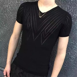 Dàn rỗng V-Cổ ngắn tay áo len thanh niên cá tính thời trang mùa hè thoáng khí kích thước lớn băng lụa t-shirt nam phần mỏng
