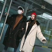 Áo khoác cotton mới trong phần dài bánh mì quần áo nam gió lửng trùm đầu bông bf gió bông quần áo người yêu áo thủy triều