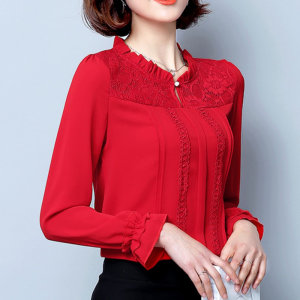 2017 mùa xuân và mùa thu mới kích thước lớn của phụ nữ nửa cao cổ áo sơ mi voan áo sơ mi dài tay ren áo sơ mi đáy áo sơ mi nữ