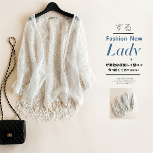 Thêu ren áo sơ mi lỏng lẻo voan áo mùa hè bãi biển kem chống nắng quần áo tua bên ngoài phần mỏng khăn choàng áo khoác nữ