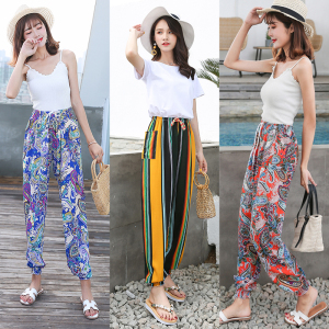 Mùa hè bohemian in nhân tạo bông lụa bãi biển quần phụ nữ quần dài củ cải củ cây bông lụa hậu cung quần