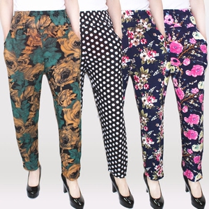 Mùa hè giữa và tuổi già phần mỏng băng lụa chín điểm cây ra hoa quần phụ nữ lỏng lẻo kích thước lớn quần hoa rộng chân quần harem bán buôn