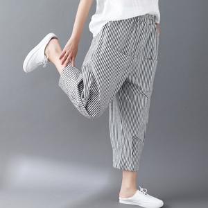 Mùa hè mới văn học fan hâm mộ bông Mahalon quần nữ lỏng sọc dọc là mỏng bảy quần quần linen feet cà rốt quần