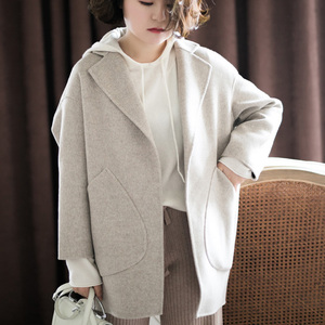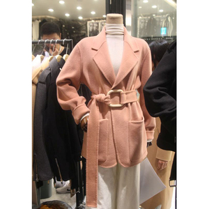 Mùa thu mới cắt giảm của phụ nữ thời trang hoang dã phù hợp với cổ áo thả vai ngắn áo khoác len thẳng A3AA53403
