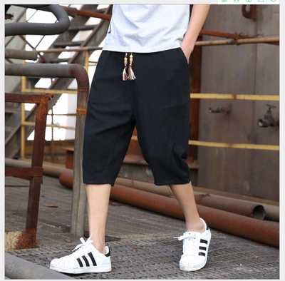 2 89 hè mới quần crop top linen nam phiên bản Hàn Quốc của xu hướng quần short 7 điểm quần nam