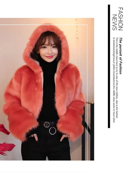 2017 phiên bản Hàn Quốc mới của áo khoác giả lông trùm đầu nữ giả lông cáo ngắn đoạn dài tay áo thời trang rộng mỏng