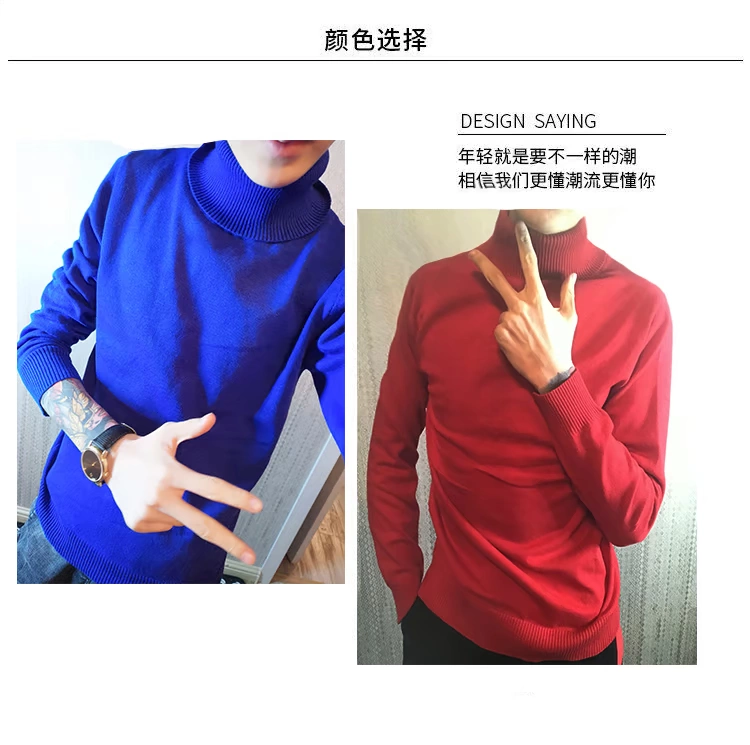 2018 áo len mới phiên bản lưới cổ cao cao giảm béo nam áo ấm thời trang tinh thần xã hội kẻ đáy