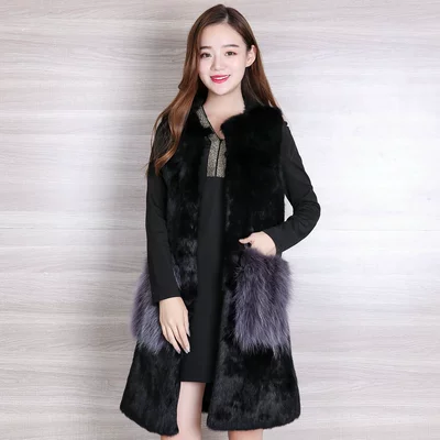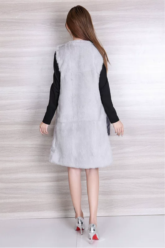 2018 thu đông mới toàn bộ bằng da thỏ lông vest dài nữ cổ tròn bọ cạp tóc ngựa clip phụ nữ hoang dã
