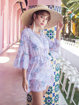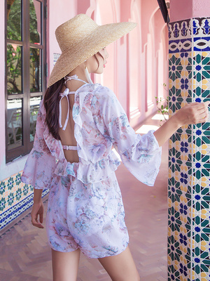 2019 cặp đôi mới bơi nữ chia góc phẳng thép hỗ trợ vành đai tay áo bảo thủ bikini đảo kỳ nghỉ tuần trăng mật áo tắm - Vài đồ bơi