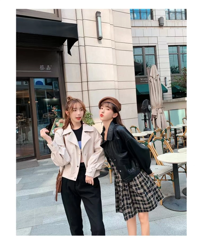 2019 phiên bản Hàn Quốc của chic lỏng nhỏ ngắn ve áo da ngắn áo khoác nữ pu rửa da áo khoác xe máy - Quần áo da