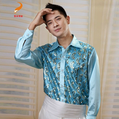 Nam trình diễn sequin áo sơ mi sân khấu hợp xướng áo dài tay nam chủ nhà trang phục ca sĩ nghi lễ