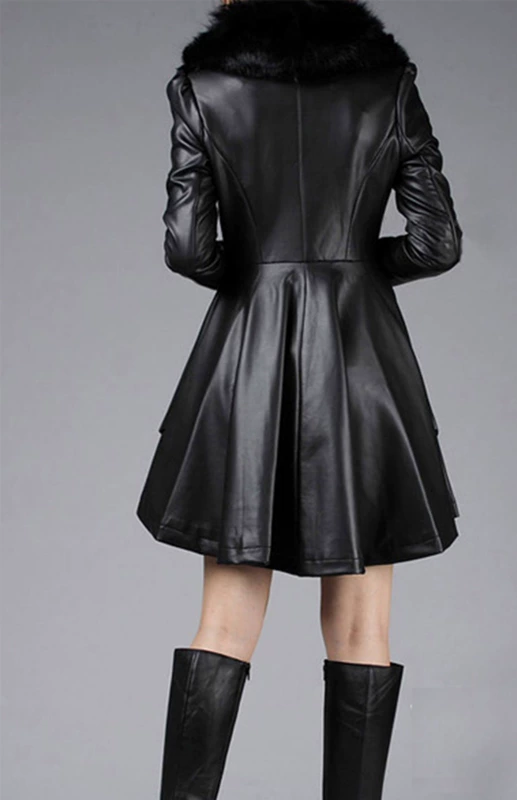 2017 mùa đông mới Hained PU da giả da cừu cao bằng da nữ dài Áo khoác da mỏng bằng da