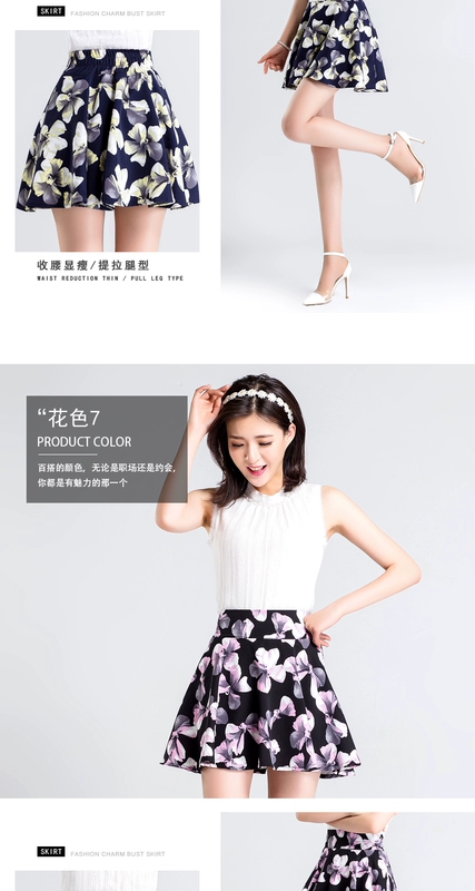 Mùa hè in cao eo váy váy ngắn hoa một từ váy pettiskirt kích thước lớn nữ váy xếp li váy váy ô váy