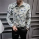Cộng với áo nhung dày nam dài tay Slim sage cặn bã thanh niên áo hoa ấm áp in lưới đỏ