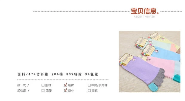 Sợi tre than năm ngón vớ kẹo màu vớ trẻ em mùa xuân và mùa thu ngắn ống cotton vớ khử mùi vớ chân thoáng khí