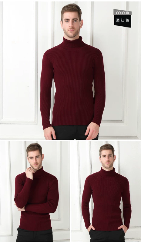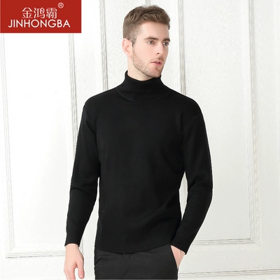 Của nam giới Cao Cổ Áo Len Nam Mùa Đông Hàn Quốc Slim Dày Ấm Cao Cổ Áo Len Cơ Sở Chặt Chẽ Cardigan Đen