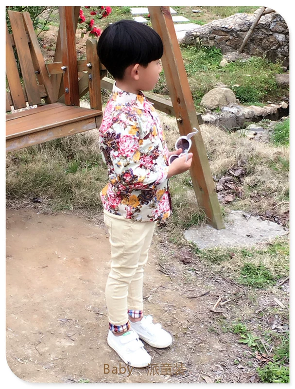 Trẻ em đứng cổ áo sơ mi trẻ em mới quần áo hoa cô gái áo sơ mi hoa dài tay áo sơ mi hoa trẻ em