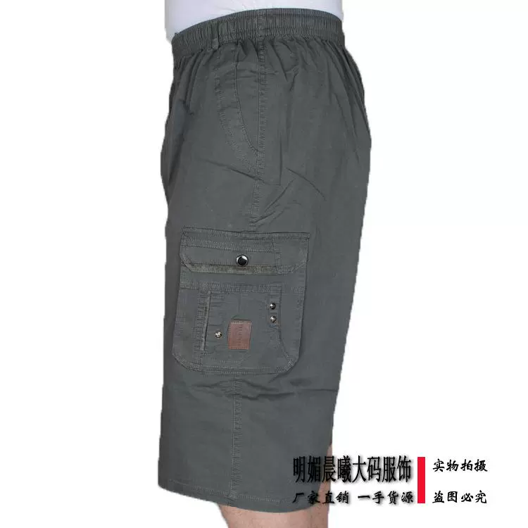 Cộng với phân bón XL mùa hè cotton 7 quần nam trung niên eo cao cotton sâu tinh khiết quần béo cha bảy quần