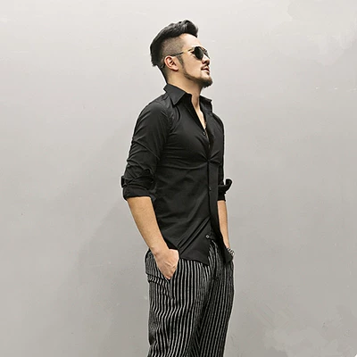 Mùa xuân 2019 mới lớn cổ áo nhọn nam màu rắn áo trắng mỏng nam màu áo sơ mi dài tay S2137