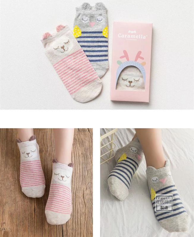 Mùa xuân và mùa hè mới 2 đôi tất nữ thuyền quà tặng hộp phim hoạt hình động vật ba chiều dễ thương AB đôi vớ cotton vớ nữ vớ