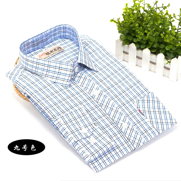 Mùa xuân và mùa thu mẫu cotton cũ thô vải sơ mi xanh trung niên nam dài tay kẻ sọc sọc thường áo cotton miễn phí