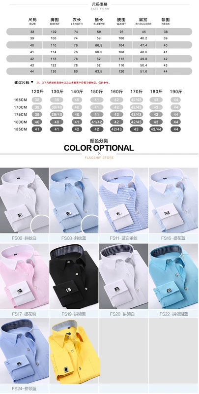 Đặc biệt cung cấp cổ áo cao chú rể Pháp khuy măng sét áo sơ mi nam dài tay kinh doanh màu rắn áo sơ mi mỏng miễn phí áo sơ mi trắng