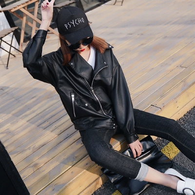 Áo khoác da bóng chày ngắn sang trọng đầu xuân nữ mùa thu và mùa thu Sinh viên Hàn Quốc Harajuku retro bf lỏng pu áo khoác da