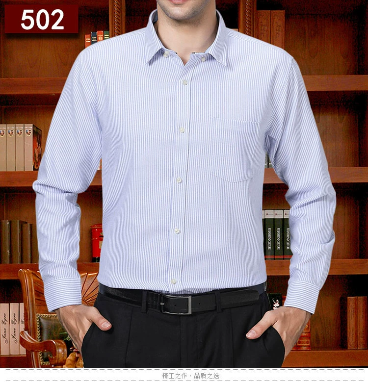 Áo sơ mi kẻ sọc trung thu cotton nam dài tay cotton rộng giản dị áo sơ mi sọc trung niên