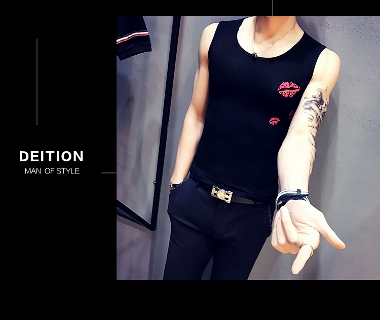 Mùa hè 2017 đơn giản màu sắc đơn giản vest nam thủy triều nam tự tu luyện nam bó sát thể thao mồ hôi tay áo vest đáy