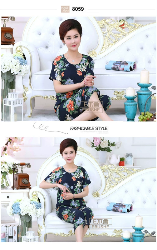Trung niên và cũ mùa hè đồ ngủ của phụ nữ quần áo nhà mỏng ngắn tay bông lụa bông mẹ mẹ trong pháp luật nạp bên ngoài mặc nhà dịch vụ