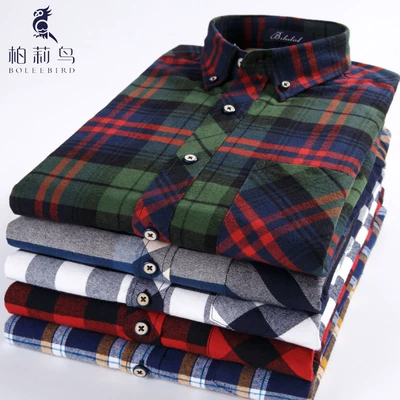 Bailey chim nam áo kẻ sọc cotton dài tay mùa thu và mùa đông cộng với nhung dày ấm áp mặc áo len giản dị kích thước lớn