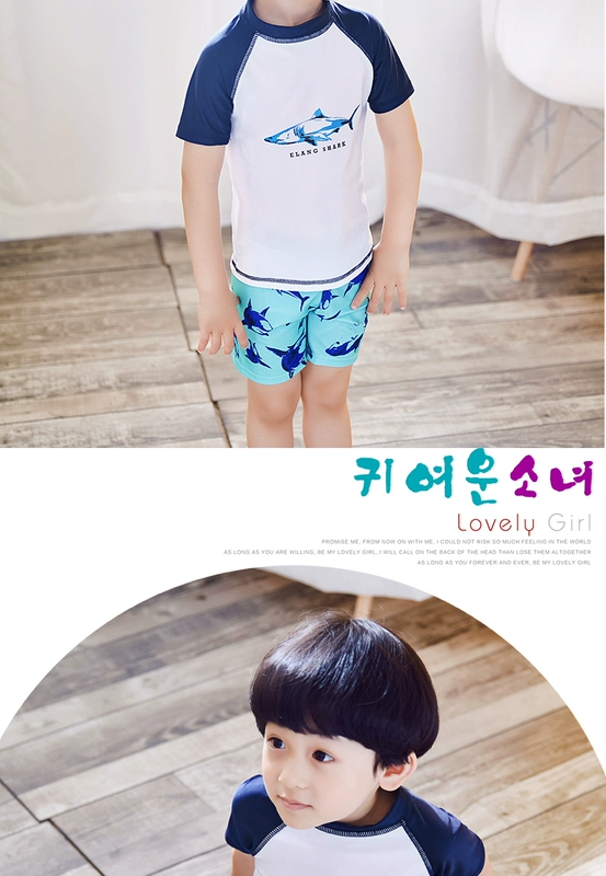 Áo Tắm trẻ em Boy Boy Chia Áo Tắm Bé Con Lớn Kem Chống Nắng Bơi Mùa Hè Mặt Trời Bơi Cap Set