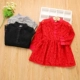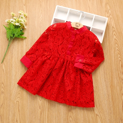 Yêu Beibei 2018 mùa thu mới cho bé gái thời trang váy liền màu nữ bé cổ tròn khoét tay dài