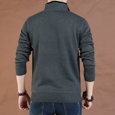 Mùa thu đông 2018 cộng với áo len nhung nửa cổ dày, áo len nam rộng kích thước lớn màu rắn cổ cao áo len cotton