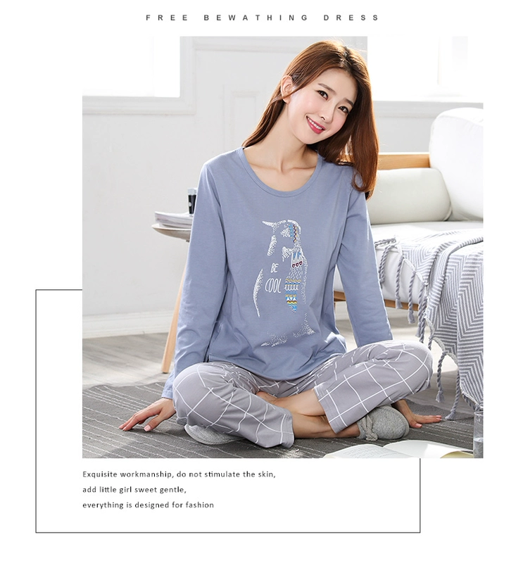 Có thể mặc bên ngoài bộ đồ ngủ mùa xuân và mùa thu dài tay cotton nữ XL cộng với bộ đồ phục vụ tại nhà MM200 kg chất béo