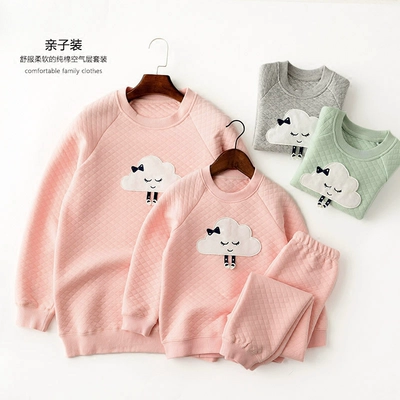 Trang phục dành cho phụ huynh và trẻ em Quần áo cotton ở nhà Quần dài tay Bộ đồ ngủ Bộ đồ cho bé trai và bé gái