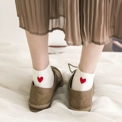 Vớ tình yêu, vớ, vớ cotton, trái tim đỏ dễ thương của Nhật Bản, bốn mùa, học sinh phong cách Harajuku, vớ thể thao Hàn Quốc