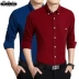 Mùa xuân và mùa đông và mùa đông cộng với áo sơ mi nhung dày nam màu sắc giản dị áo sơ mi thanh niên kẻ sọc dài tay áo mỏng