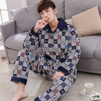 Bộ đồ ngủ ba lớp dành cho nam mùa đông dày flannel pyjama