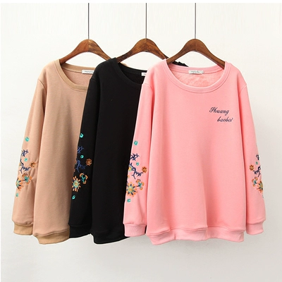 18 mùa thu và mùa đông mới cộng với phân bón XL béo MM200 kg Phiên bản Hàn Quốc thêu màu vàng cam lỏng lẻo cộng với áo len dày nhung