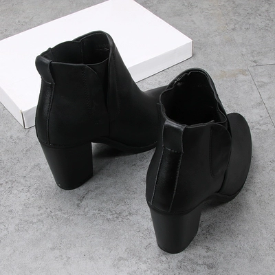 Giày cao cổ co giãn nữ đi lại siêu cao với đế dày có mũi nhọn Martin cộng với nhung ấm áp ngắn