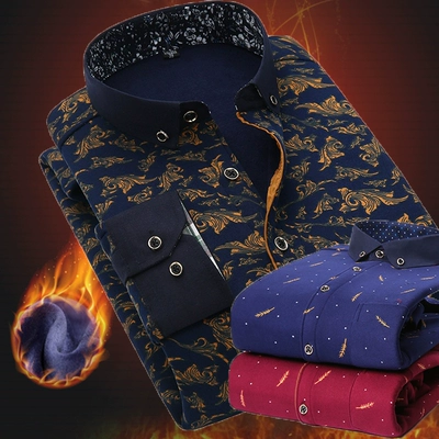 Mùa thu và mùa đông tuyết tùng dài tay mặc nam công sở cộng với áo sơ mi nhung dày ấm áp