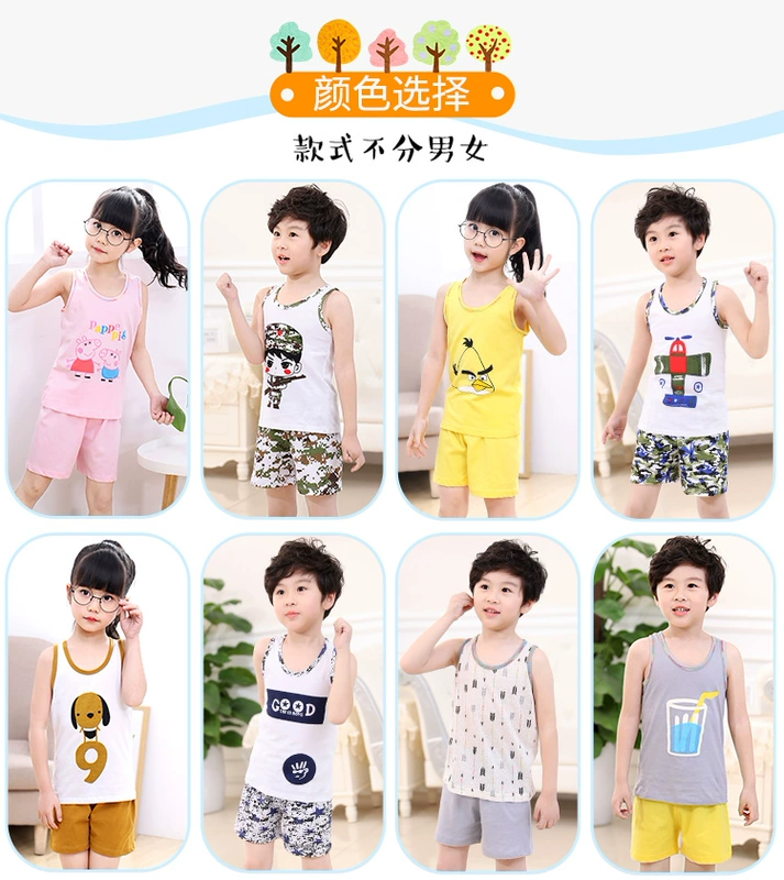 Trẻ em mùa hè vest quần short đặt 2-5 chàng trai cotton trẻ em quần áo cô gái quần áo 9 tuổi nữ bé mỏng mùa hè ăn mặc